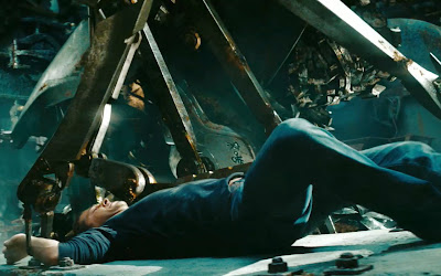 - La inmensa mole de metal destrozapuentes no es otra que Devastador, un constructicon formado por la unión de varios Decepticons con forma de vehículos de la construcción; en la serie animada eran 6, pero viendo el tamaño colosal que tiene en el spot televisivo, es posible que en la película sean incluso más, ya que sólo he logrado ver 2 o a lo sumo 3 vehículos y podría tener piernas en lugar de esa rueda gigantesca. Como nota informativa, éste es el tamaño comparativo con una grúa de construcción y el pequeño robot que se le lanza encima es Optimus.